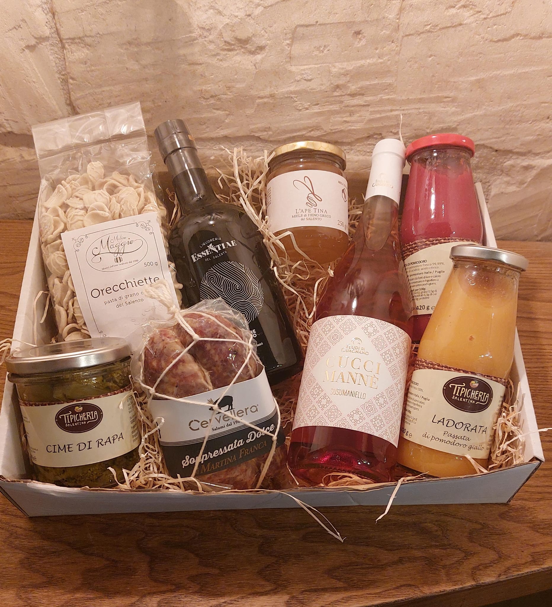 Ogni cesto regalo viene confezionato con cura e presentato in modo elegante, avvolto in